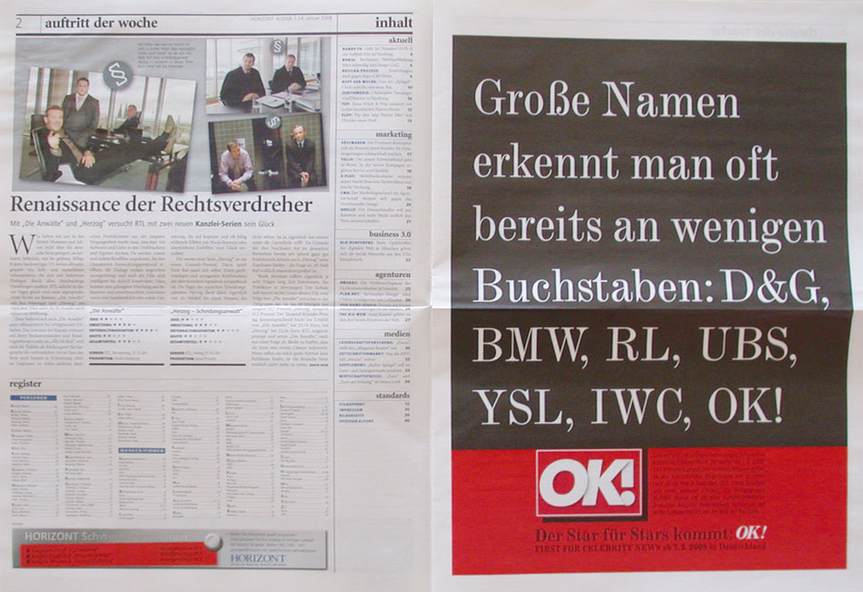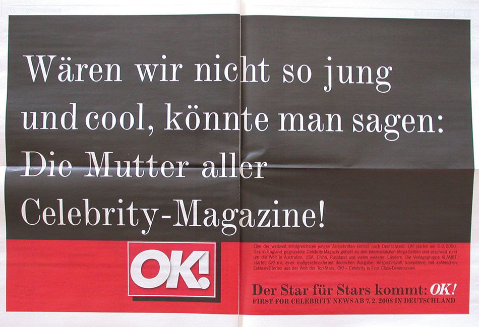 Anzeigen-Kampagne zur Neueinführung der Zeitschrift ‚OK!‘ in Deutschland